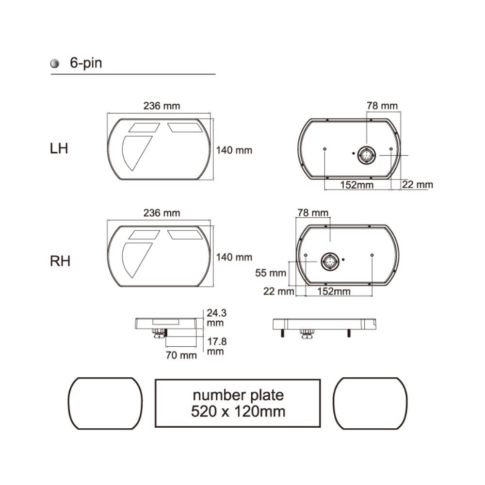 Achterlicht LED 12V 7-functie 6-pin rechts