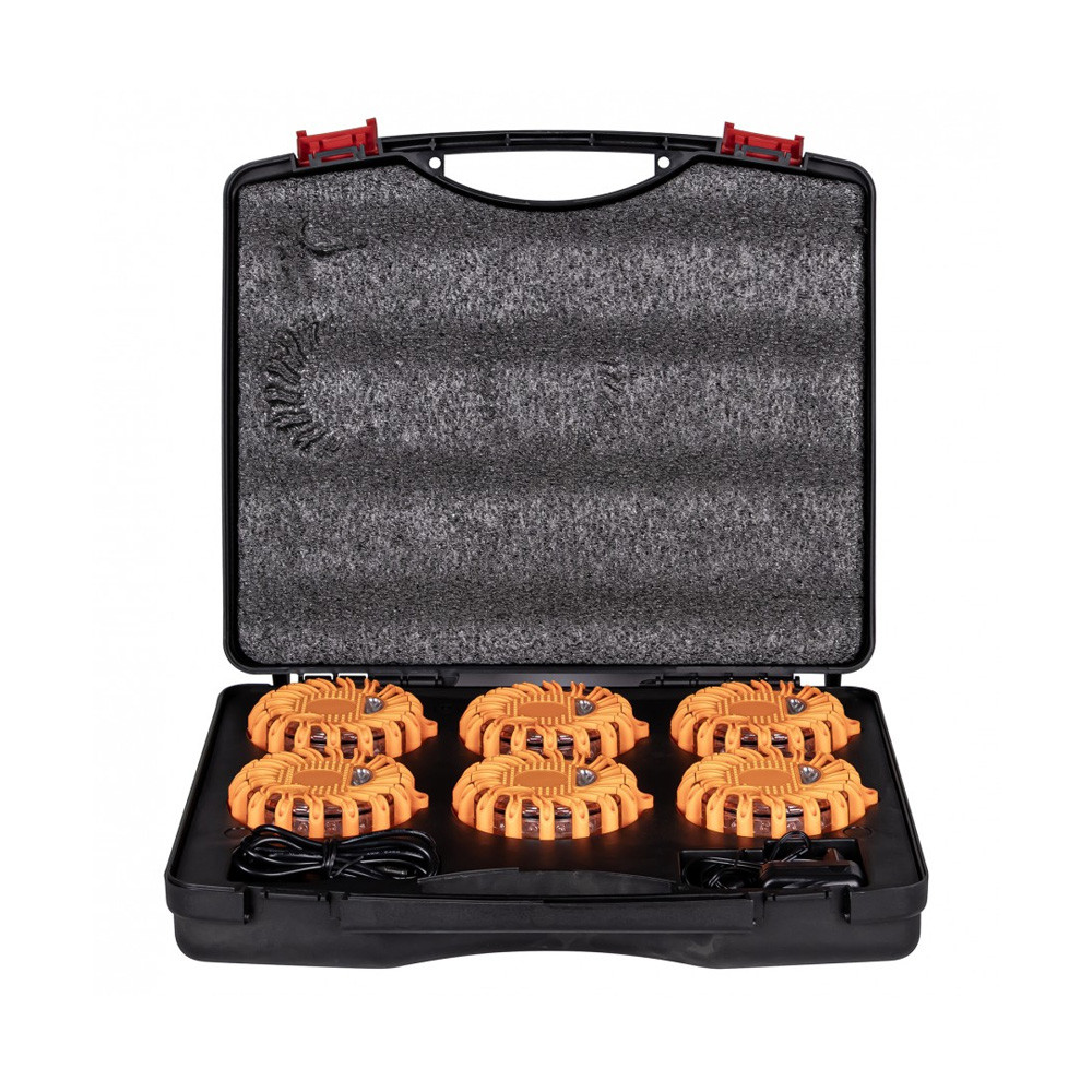 Deze set van zes duurzame LED-signaallichten in een handige draagkoffer is ideaal voor noodsituaties en werkzones. De lampen geven 360° licht, zijn waterdicht (IP56) en beschikken over 9 verlichtingsmodi, waaronder SOS en zaklamp. Dankzij de ingebouwde magneet en haak zijn ze eenvoudig te bevestigen op voertuigen, barrières of kleding.
